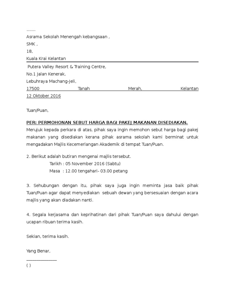 Contoh Surat Minta Sebut Harga Putera Valley Resort Pdf